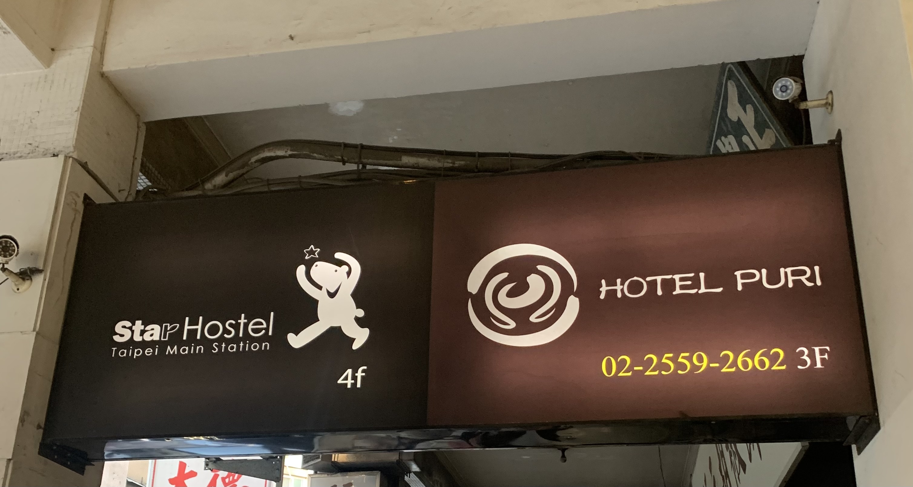 위 사진에서 '타이베이'라고 표시되는 것이 타이베이 메인스테이션이고 빨간색 표시가 스타호스텔입니다. 걸어서 5분 정도이며 대로를 걷다가 골목을 살짝 걸으면 금방 찾으실 수 있습니다. 살짝 걸어야하는 골목이 시장 골목처럼 상가가 많아서 4층에 있는 스타호스텔을 찾으려면 간판을 잘 보셔야 하는데요. 아래에 사진을 첨부하니 간판을 참고해주세요!