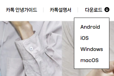 0. 카카오톡 홈페지 오른쪽에 다운로드를 클릭합니다. 본인의 필요에 따라 4가지 중 한가지를 클릭합니다.