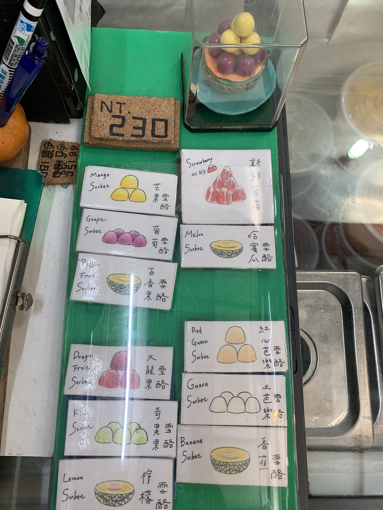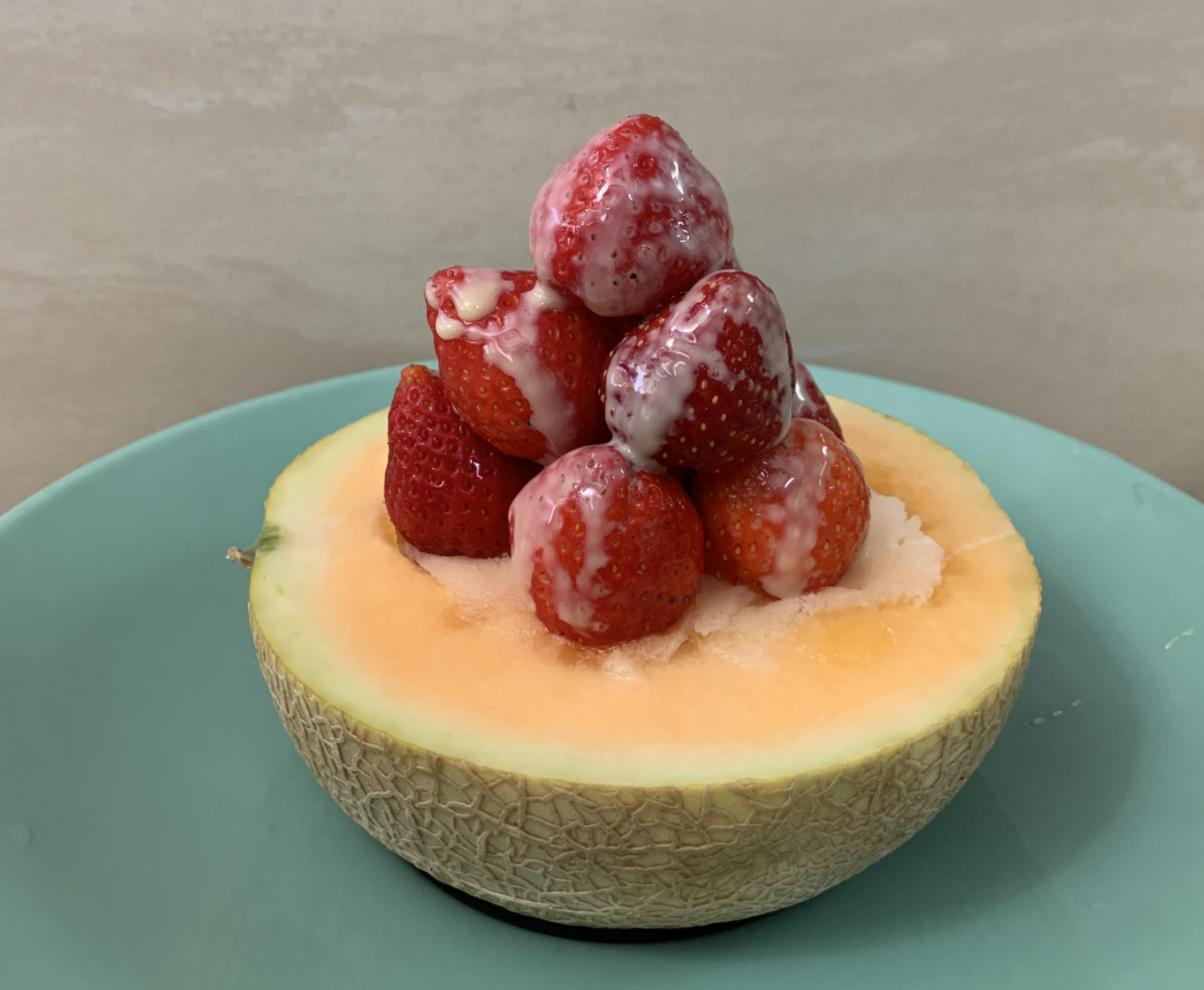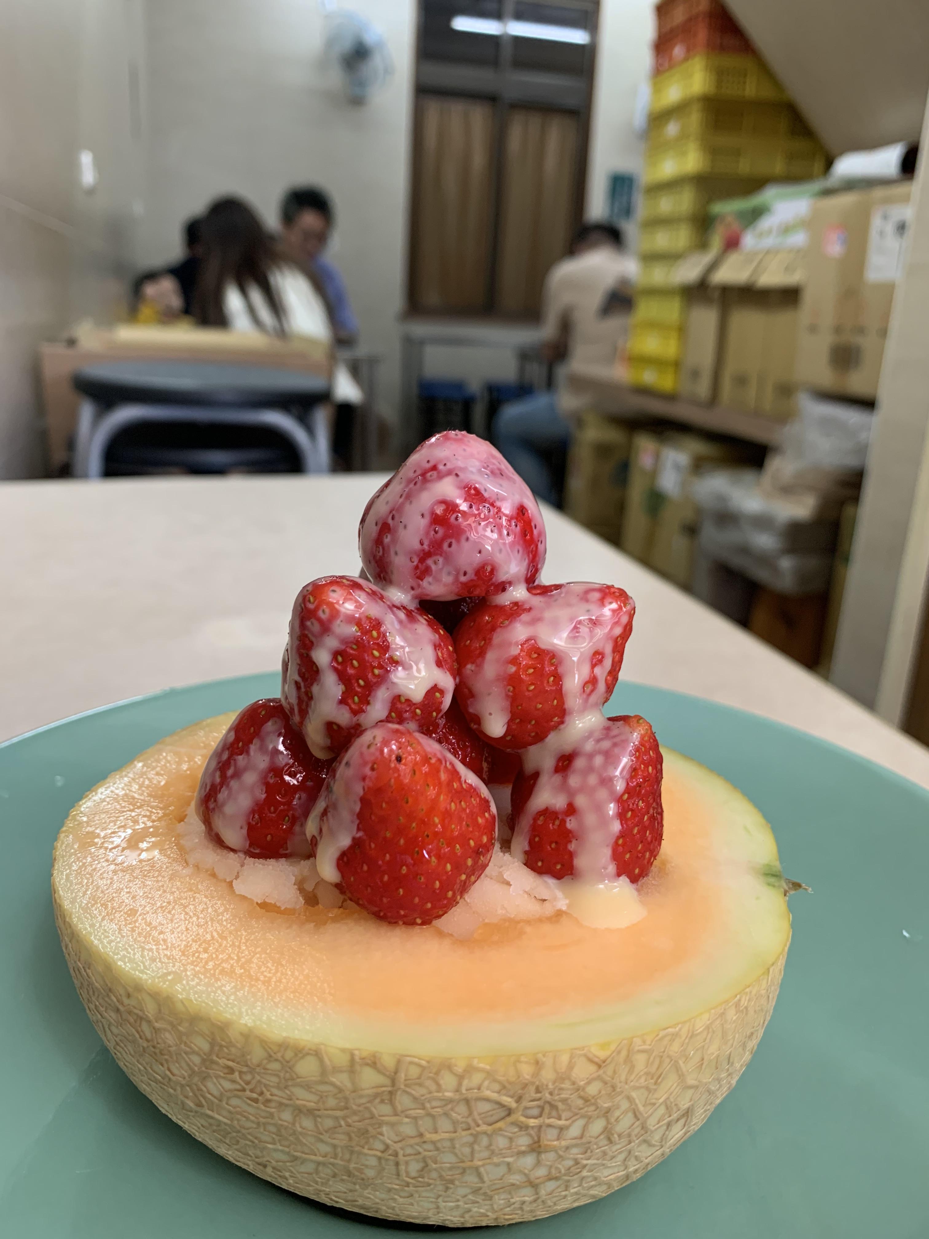 이곳에서 가장 유명한 메뉴는 바로 멜론 빙수에요! 정식 명칭은 하미과 멜론 빙수로, 반쪽으로 잘라낸 하미과 속에 아이스크림과 샤베트를 잔뜩 채운 비주얼의 끝판왕이에요. 가격은 230NTD 정도로 한화로 약 9,700원 정도예요. 대만 과일 빙수 중에서도 이곳의 빙수는 비주얼이 예뻐서 사진 찍으려고 방문하시는 분들도 꽤나 있다고 하시더라구요? 저는 무엇보다 맛이 중요했는데 샤베트는 다 알것 같은 맛이어서 딸기가 잔뜩 올라간 맛으로 골랐답니다. 딸기 이외에도 파인애플, 용과, 구아바 등 신선한 과일로 만든 메뉴도 다양하니 취향에 맞게 골라 먹을 수 있다는 장점이 있어요.
