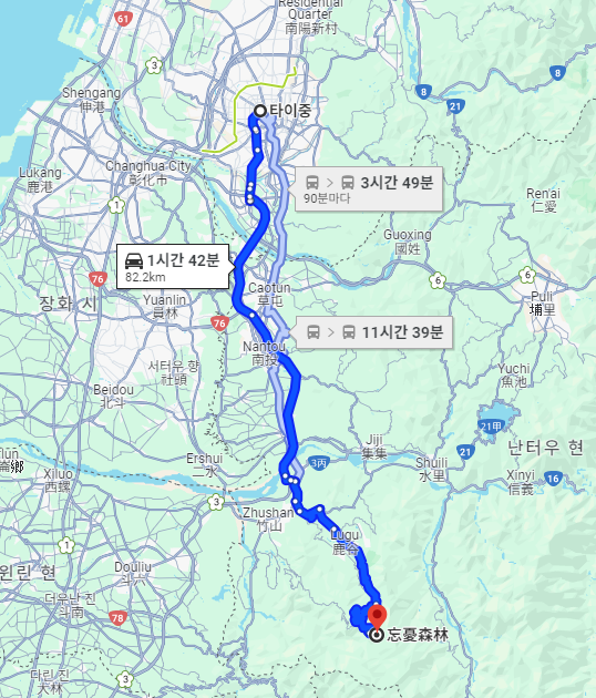 멋진 풍경을 보러 가려면 타이중에서도 아주 오랜 시간 이동을 해야하는데요? 버스로 갈 수도 있고 일일투어 프로그램을 통해서도 갈 수 있으니 자세히 알아보시고 가시기 바랍니다. 참고로 타이중 시내에서 망우삼림까지 한번에 바로 가는 버스는 6871버스로 간정청류장(차고지)에서 망우삼림(이 노선의 종점)까지 약 3시간에서 3시간 반정도 걸립니다. 멀리 여행하시는 만큼 아침 일찍 움직이시기 때문에 피곤함으로 인해 쿨쿨 주무시다보면 어느새 도착이라는거 ! 참고하시고 꼭 한번 가보시길 추천드려요~!