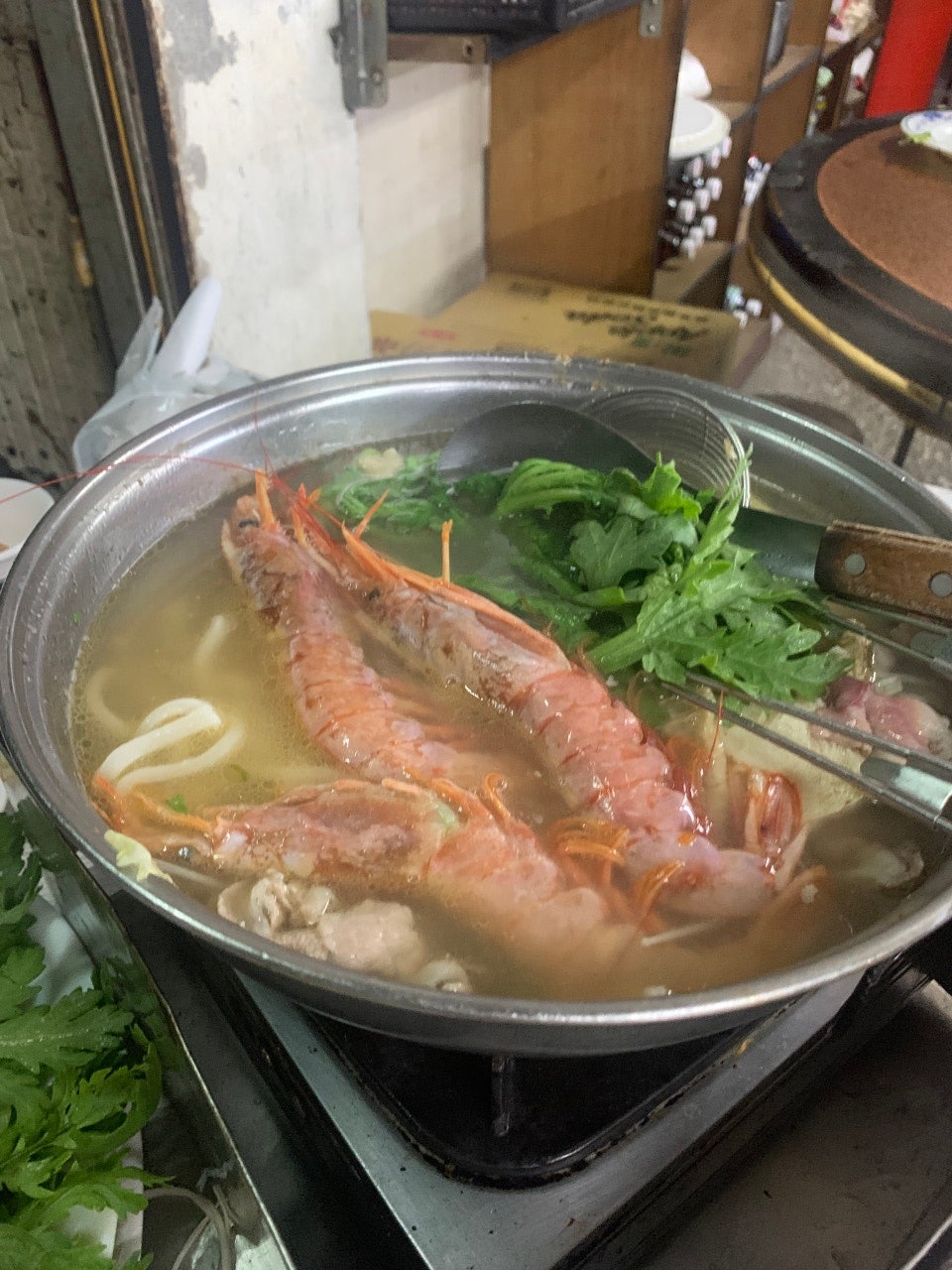 메뉴판을 받고 나서 다양한 옵션들에 놀랐어요. 저는 번체 메뉴판으로 도전해보았어요. 기본 훠궈는 오리지널 맛을 선택하고, 돼지고기와 수타 새우 완자도 함께 주문했어요. 위에 사진에서 보이시는 것처럼 다양한 재료를 많이 넣어보고 싶어서 해산물, 고기, 야채 등 온갖가지 재료를 주문했었습니다. 구글 번역기 돌리면 번체 메뉴판으로도 충분히 주문하실 수 있을것 같습니다.
