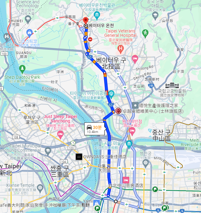 먼저 지도를 보면 아시겠지만 베이터우(北投)는 타이페이에서 40분 정도 걸리는 거리에 있고, 우라이(烏來)는 1시간 30분 정도 걸리는 거리에 있습니다. 이 포스팅을 참고하셔서 둘 중에 하나를 선택해보시면 어떨까요?